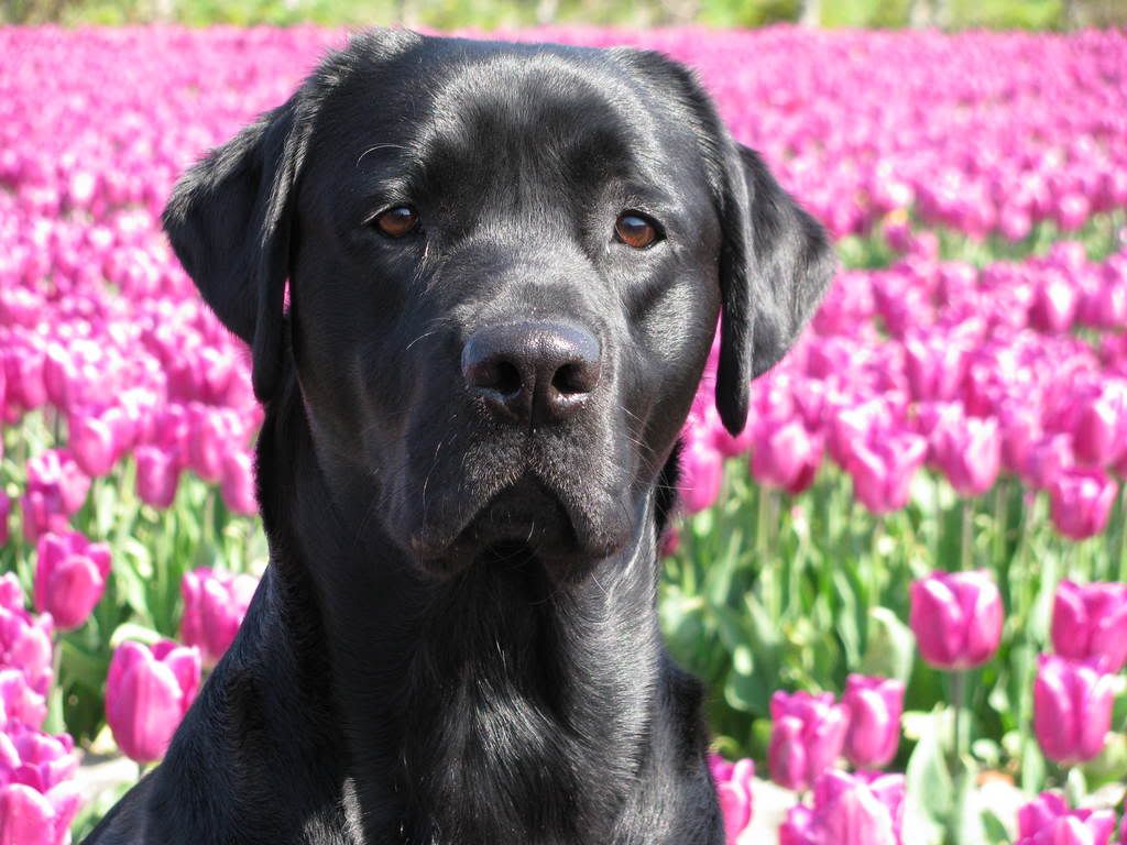 Een tulpenveld... wel een heeellll erg groot! Super mooi die zwarte hond met paarse achtergrond!