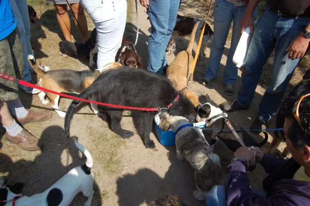 Halverwege de (aangelijnde) wandeling mochten er omstebeurt twee puppies los, de trainer hield deze bij zich terwijl de baasjes een stukje verder uit het zicht gingen staan. Op de actiefoto's zie je hoe die aan kwam rennen toen ik m riep. Verder hebben ze aan het begin en aan het einde even lekker met elkaar gespeeld zonder lijn, maar zeker niet onverantwoord! (Al snap ik dat het er zonder uitleg misschien wel zo uitziet)