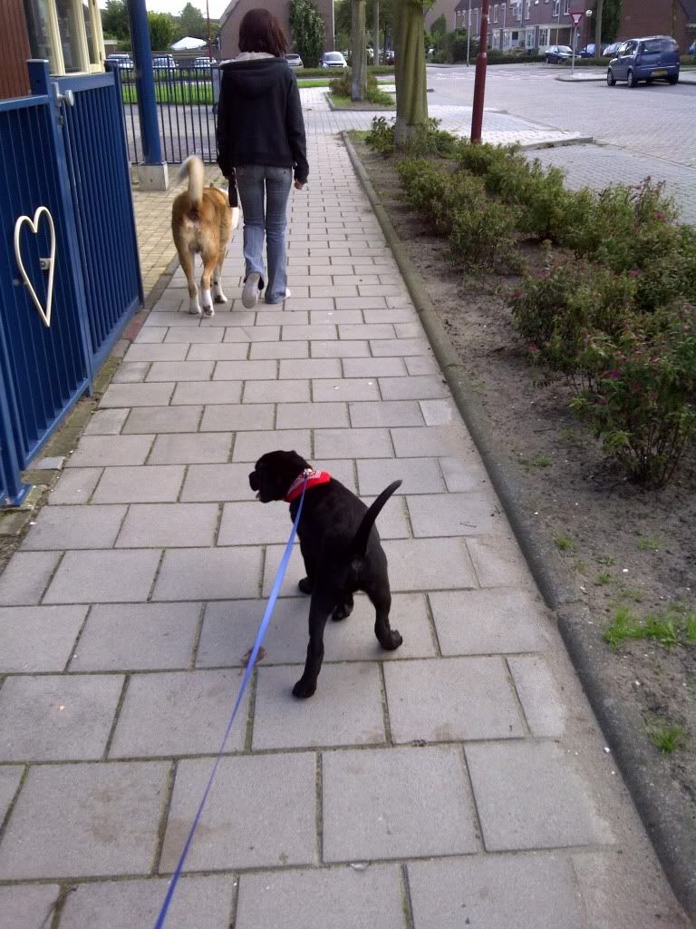 Zoooooooooo het is mijn bazinnetje gelukt om al wat fotos op het forum te plaatsen. De 1e foto ben ik met mijn grote broer Lucky. De 2e foto sjok ik er achter aan. De blauwe riem mag ik inmiddels niet meer. Dat is haar geleerd op school waar ik elke maandagavond heen moet. Nu moet ik ook meestal alleen met de baas naar buiten.